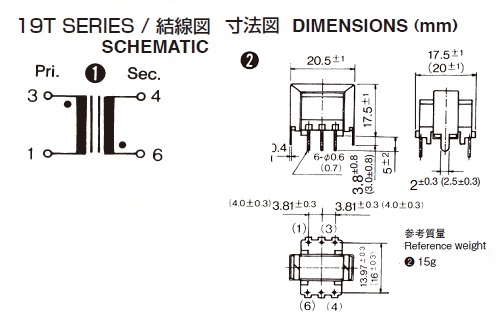 ●自動挿入機対応 ●断線防止構造 ●自動生産ライン対応 ●最大入力レベル + 10 dBm ●周波数帯域 300Hz 〜4.0KHz ●耐電圧 AC500Vr.m.s. 1 分間 ●絶縁抵抗 DC500V 100MΩ 以上 |