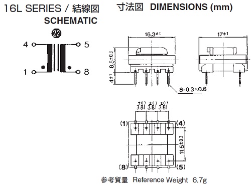 ●薄型構造 ●断線防止構造 ●平板ピン ●最大入力レベル +5 dBm(01〜02) +10 dBm(06〜07) ●周波数帯域 300Hz〜10KHz ●耐電圧 AC1000Vr.m.s. 1分間 (1次−2次、鉄心間) ●絶縁抵抗 DC500V 100MΩ以上 |