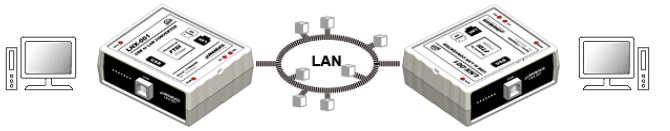 別のPCに接続されたLNX-001とトンネリングモードにより1:1で通信することもできます。
