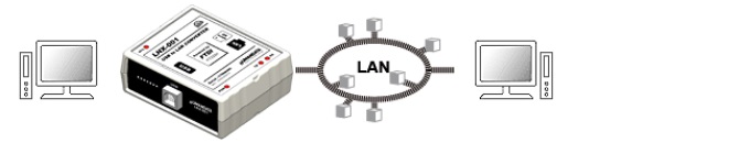 USBを搭載したPCからLAN経由で接続されたデバイスサーバ(LNX-002、LNX-003など)と接続することができます。