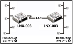LNX-003同士での接続も可能です。その場合、別のRS485/422回線グループに参加することができます。
