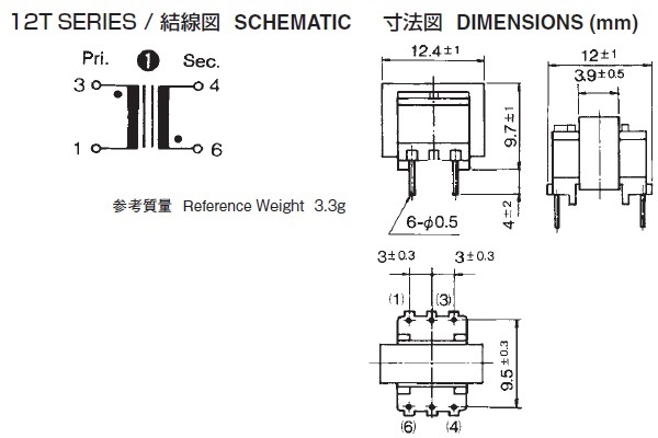 ●小型軽量 ●自動挿入機対応 ●最大入力レベル 0 dBm ●周波数帯域 300Hz〜10KHz ●耐電圧 AC500Vr.m.s. 1分間 ●絶縁抵抗 DC500V 100MΩ以上 |
